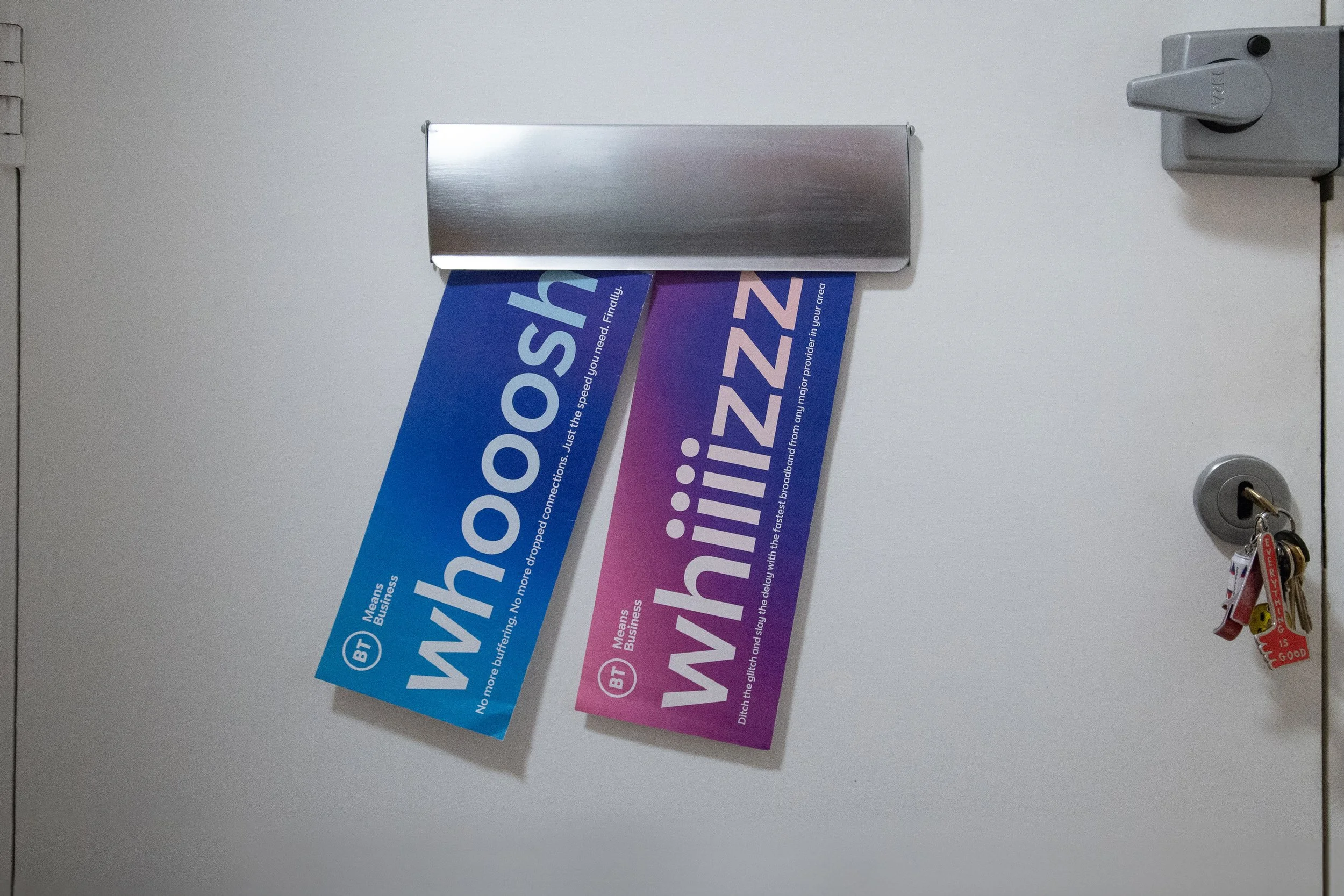 When you don’t have a budget, but you need to let people know that BT’s broadband is really, really fast, there are still things you can do to grab attention. Proving again that size does matter, these long, thin DMs and some zippy email animations were how we spread the good news of full fibre broadband reaching the area (over a year before Tesco’s first campaign for Whoosh).